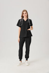 JelriSoFit® Classic Medical Scrubs for Women – Black, Durable & Shape-Retaining